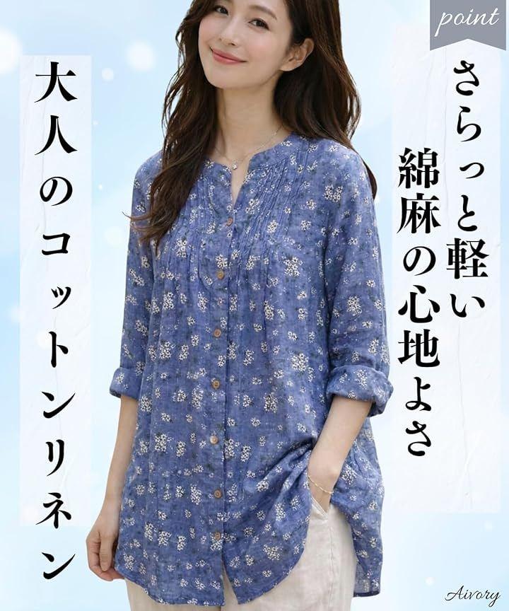 「軽やか花柄チュニック」Aライン花柄のロングシャツワンピース。