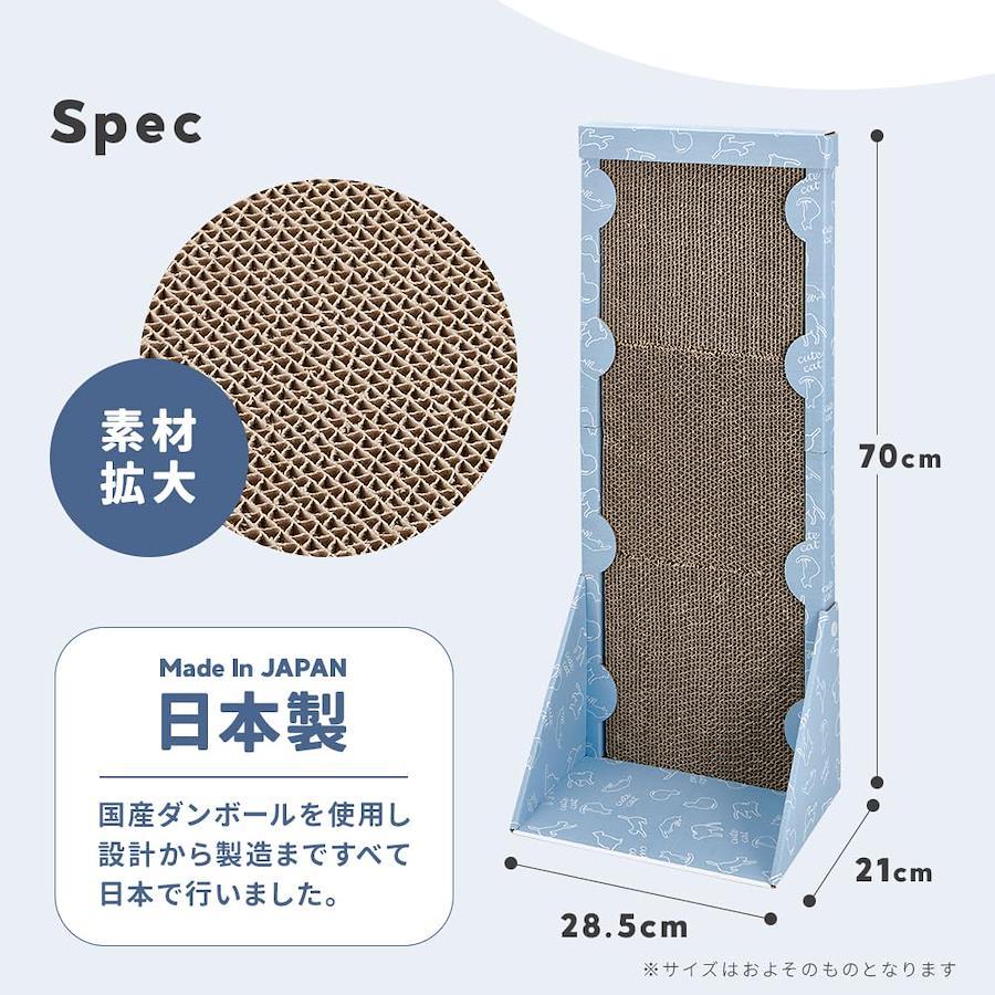 【商品仕様】商品サイズ/(約)28.5×21×70cm(組立時)、材質・成分/本体:紙、セット内容/本体×1・爪とぎパッド×3・底部×1・ネジ(オス)×12・ネジ(メス)×12、用途/本品は猫用の爪とぎです、原産国/日本【背伸びしながら 気持ちよく爪とぎ】ねこちゃんがのびのび爪とぎできるスタンドタイプの爪とぎ。おうちの家具や壁での爪とぎ対策としても。【省スペース】壁ぎわに立てて置けば場所を取らず、省スペースで設置可能。お部屋の邪魔になりません。【日本製】国産ダンボールを使用し、設計から製造まですべて日本で行いました。【爪とぎパッドが交換できるから経済的】研いでボロボロになったらひっくり返して新しい爪とぎ部に入れ替えることができます。上下・左右・裏表と自由自在に組み換え可能。