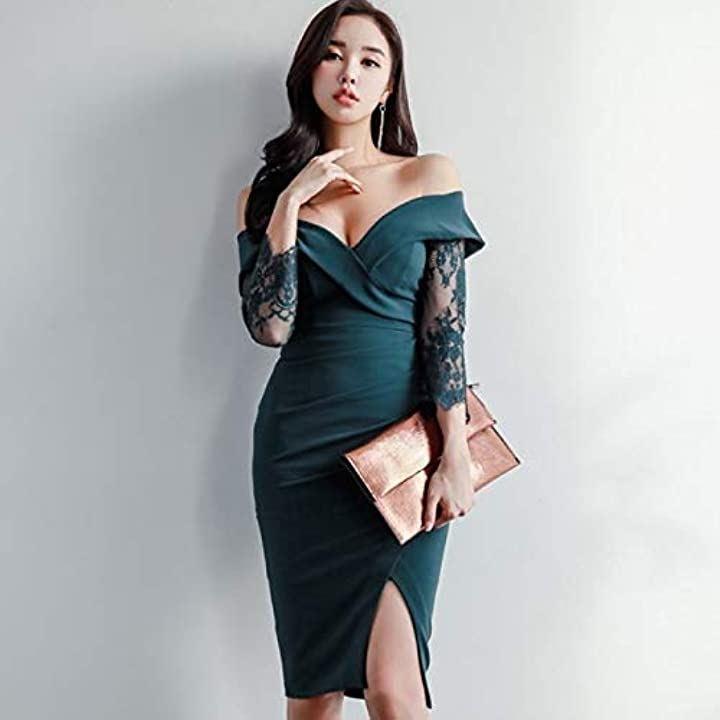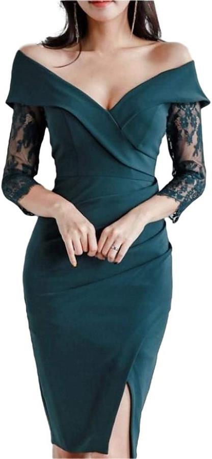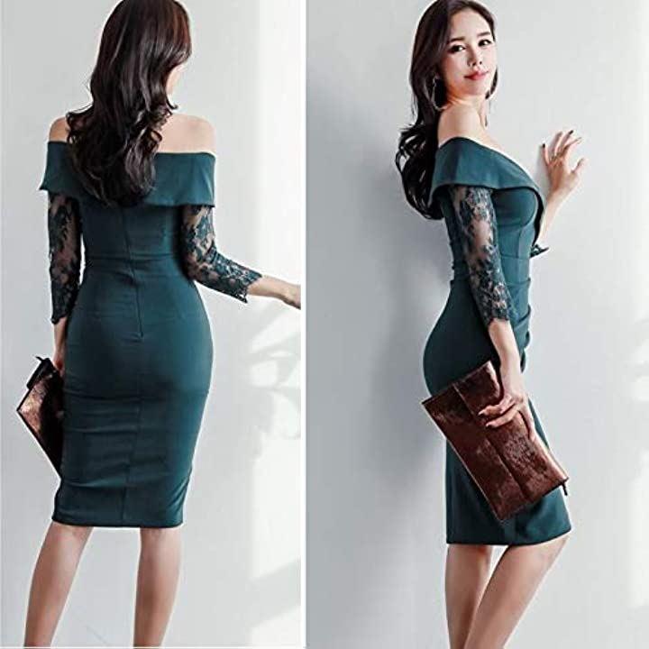 ・深い森の中をイメージするような、ディープグリーンのエレガントで神秘的なワンピース、パーティドレスです