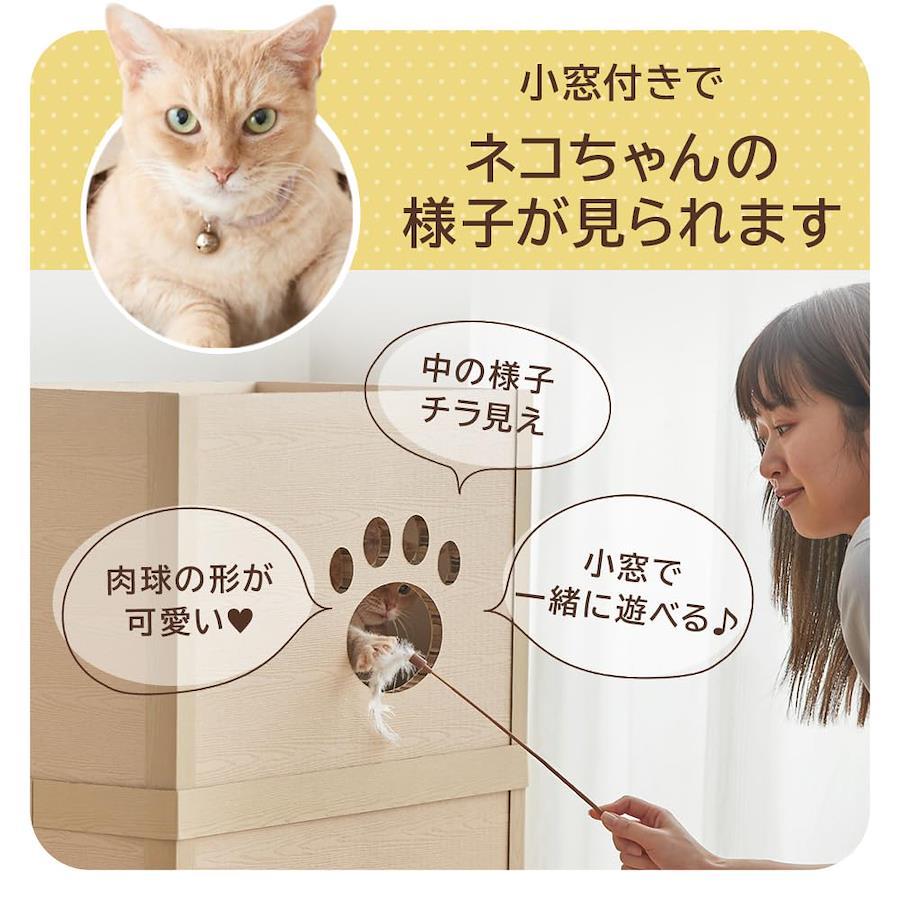 ◆小窓付きでネコちゃんの様子も見られます可愛い肉球の形の小窓。小窓から中の様子をちらり。小窓越しに一緒に遊べます。