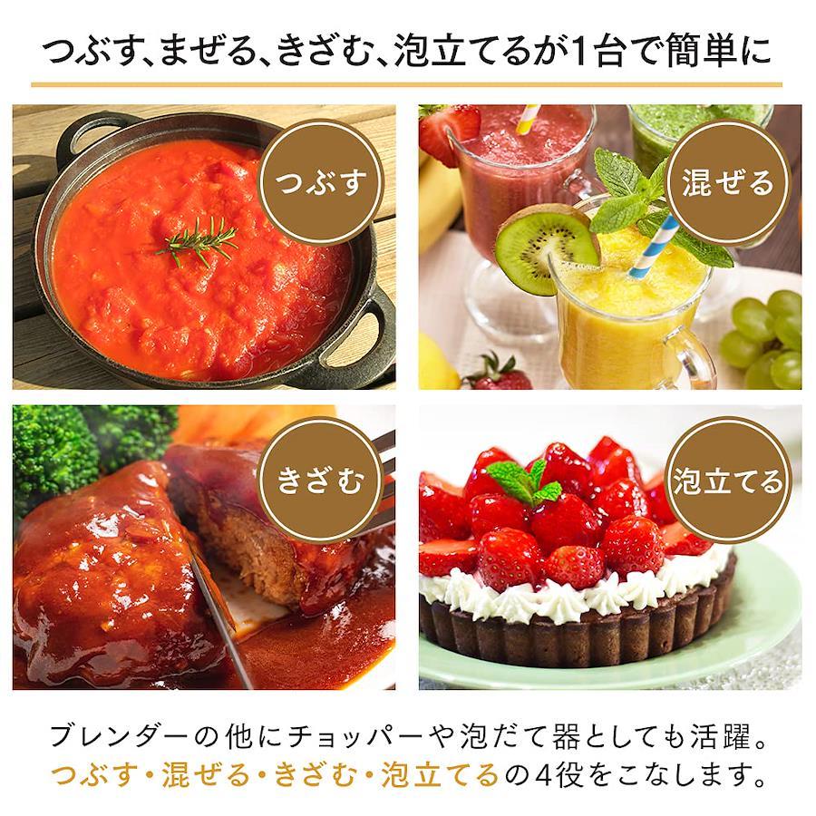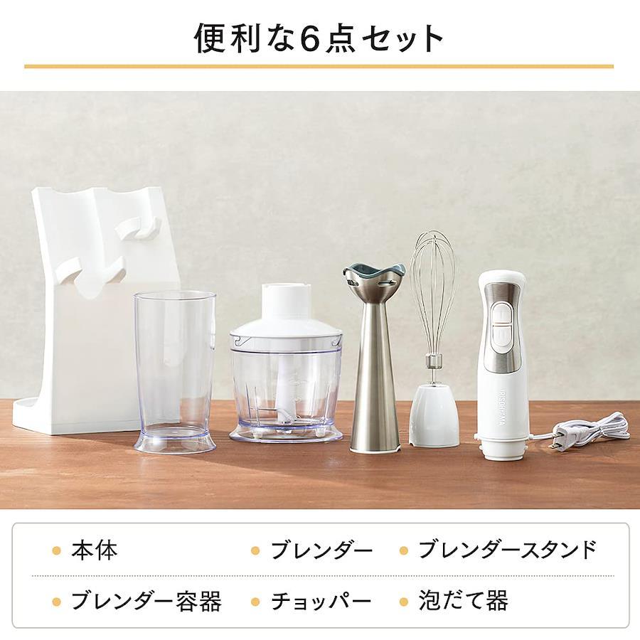 3営業日以内に発送≪新品未開封品≫:商品サイズ(cm)(ブレンダー装着時、電源コードを含まず):幅約7.0×奥行約7.0×高さ約38.6質量(ブレンダー装着時):約0.8kg電源コード長さ:約1.7m電源:AC100V、50/60Hz●定格消費電力:200W定格時間:ハンドブレンダー、チョッパー:1分(1分運転後は10分休止):泡立て器:2分(2分運転後は10分休止)モデル年度: 2020発売年: 2020発売年・モデルイヤー: 2020