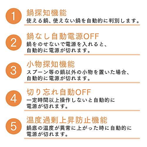 電源コード長さ:約1.8m/●ヒーター:IHヒーター 1400W/●火力調節/加熱調理:6段階(火力)80W相当~1400W/揚げ物調理:6段階(油温)約150~約200℃
