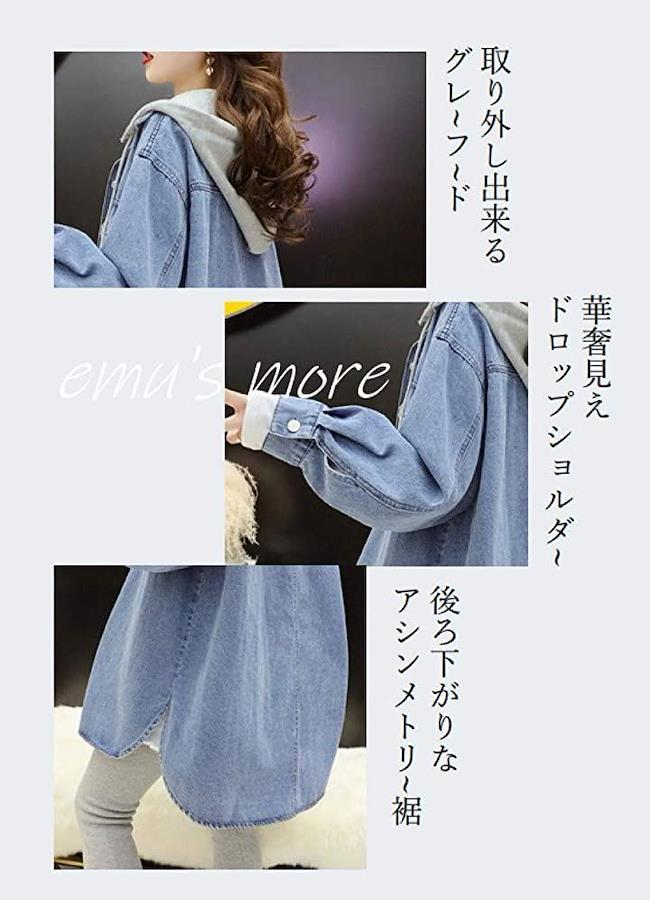 両胸にはポケット付きとなり、フードは取り外し可能で、パーカーをレイヤードしているような着こなしができ、おしゃれなカジュアルデザインも嬉しいポイントです。