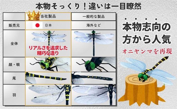 「本物そっくりな設計」オニヤンマは眼球、羽、胴体の細部まで精巧に再現。自然界に近い色で仕上げリアルな質感も特徴です。