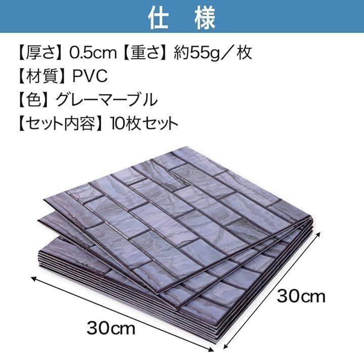 「サイズ」約 縦 30cm x 横 30cm x 厚さ 0.5cm「重さ」約55g/枚「材質」PVC「色」大理石調「セット内容」10枚セット