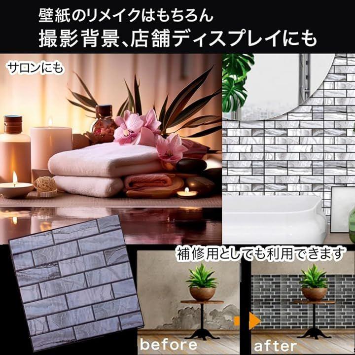 高級感あるグレーの大理石調が空間に映える、3Dウォールパネル10枚セットです。