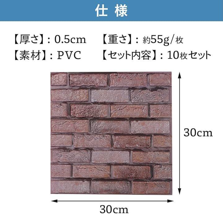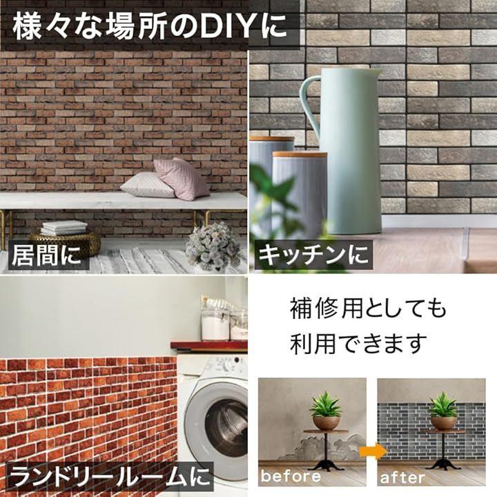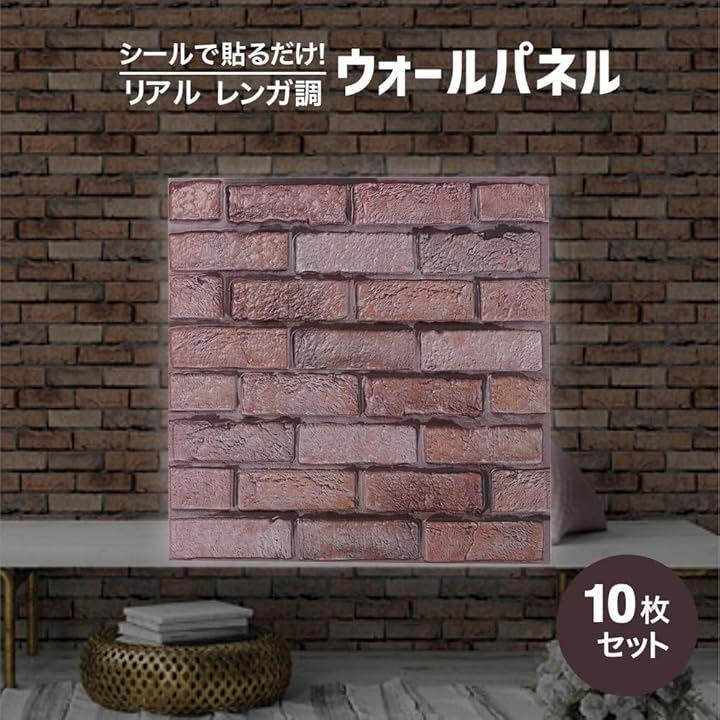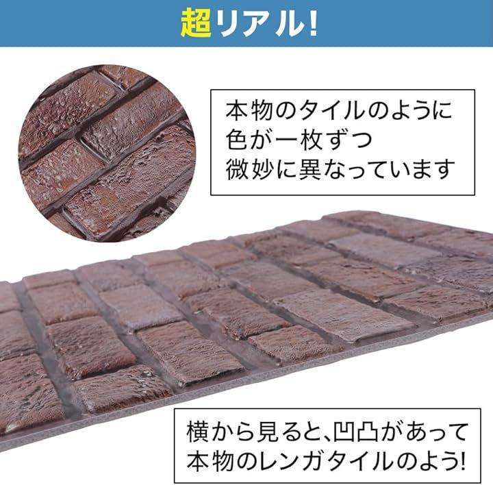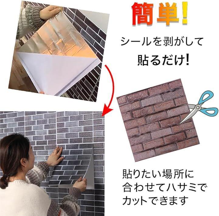 シールタイプで貼るだけで施工できるリアルなレンガタイル風ウォールパネル10枚セットです。