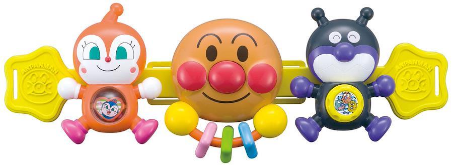 ★ベビーカーに取り付けて遊べるアンパンマンの電池不要のおもちゃです★アンパンマン、ドキンちゃん、ばいきんまんの3人をベビーカーに取り付けてお出かけできます。アンパンマンは鼻がピッピとなり、星形のリングがスルスル動きます。ばいきんまんはおなかのダイヤルを回すとカリカリ音がします。ドキンちゃんはおなかのビーズがシャラシャラ動き、中のプレートが回転します。キャラクターをそれぞれベースから外して個別にベルトに付けて持ち運びも可能です。お部屋でそれぞれを1つずつのラトルとしても遊べます。(.co.jpより) 対象年齢:7月以上 主な製造国:中国 アンパンマンは鼻がピッピとなり、星形のリングがスルスル動きます。 キャラクターをそれぞれベースから外して個別にベルトに付けて持ち運びも可能です。 お部屋でそれぞれを1つずつのラトルとしても遊べます。
