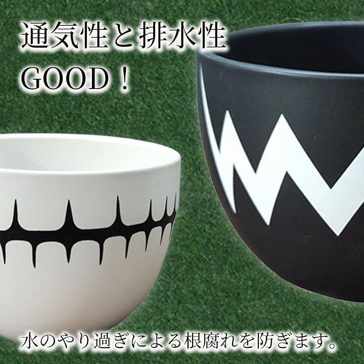 通気性の良い浅鉢。白・黒選べる4号サイズのシンプル陶器鉢。