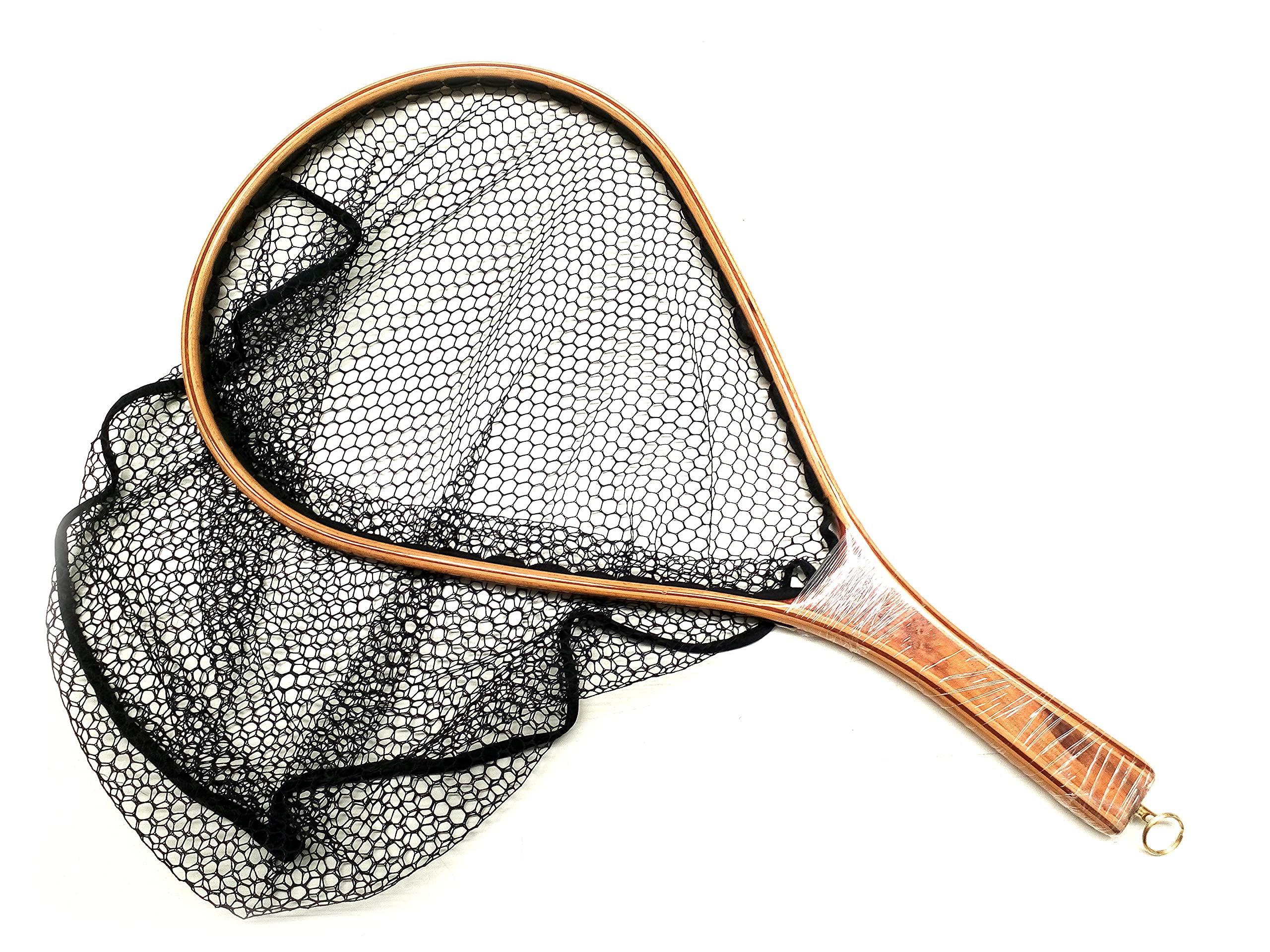 グリップ部に木目の美しいバール材を使用したハンドメイドネットです。