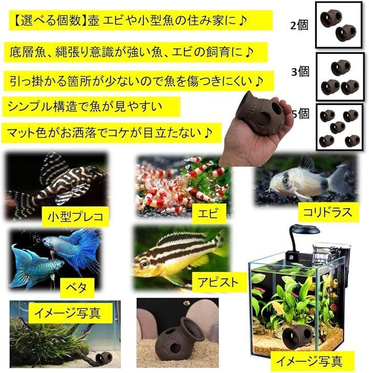 「選べる2種類 2個 3個 5個 セット 壺 土管 」アクアリウム 水槽 オブジェ 壺 土管 隠れ家 アクアリウムオーナメント 飾り エビ 熱帯魚 爬虫類 海水魚 金魚 メダカのレイアウト素材としてお使いください。