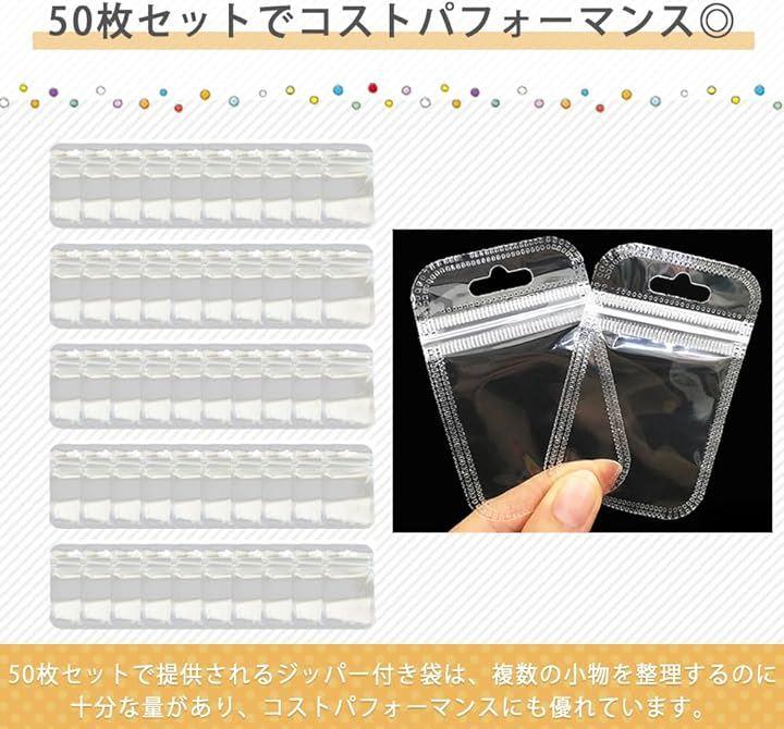 「50枚セットでコストパフォーマンス」50枚セットで提供されるジッパー付き袋は、複数の小物を整理するのに十分な量があり、コストパフォーマンスにも優れています。