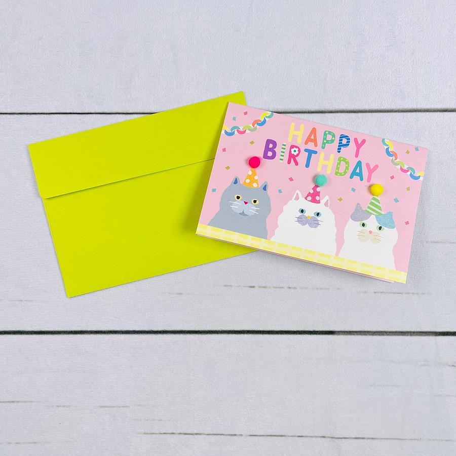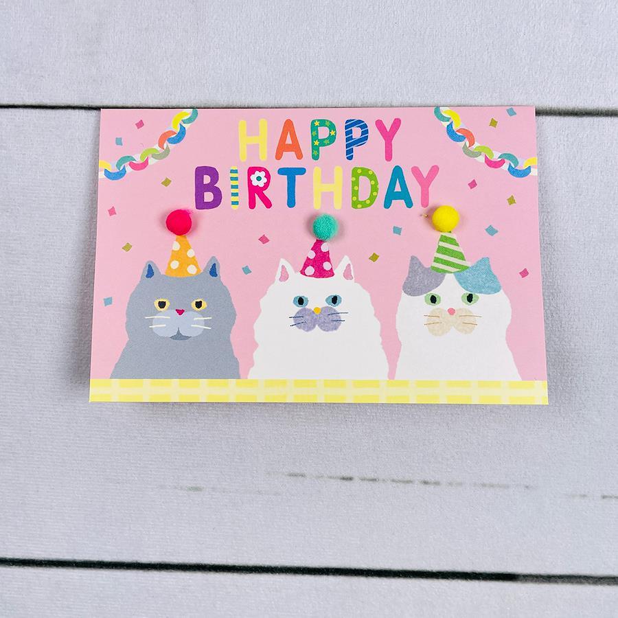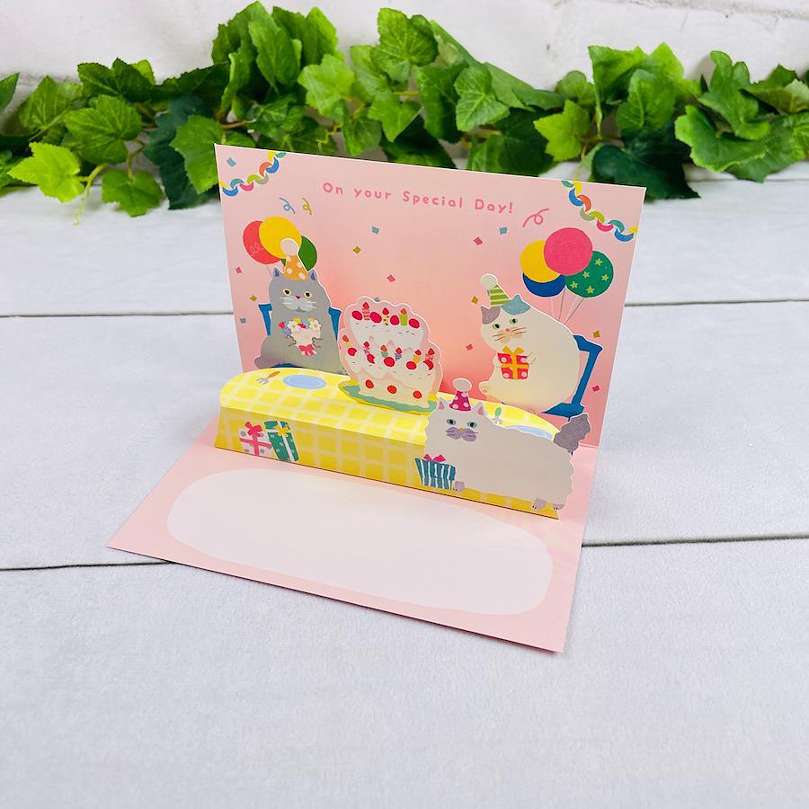 フラッフムームーの誕生日用グリーティングカードです。楽しそうにパーティーしているPOP UPカード。