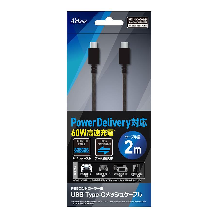 ■セット内容:USB Type-Cメッシュケーブル×1 ■対応機種:PS5/Switch/SwitchLite/その他Type-C充電対応機器 ■ケーブル長:約2m ■USB端子:USB Type-C ⇔ USB Type-C ■対応出力:最大60W対応 ※ ■USB規格:USB2.0 ■カラー:ブラック ※60Wでの充電は対応する電子機器とACアダプタをお使いの場合の最大出力です。