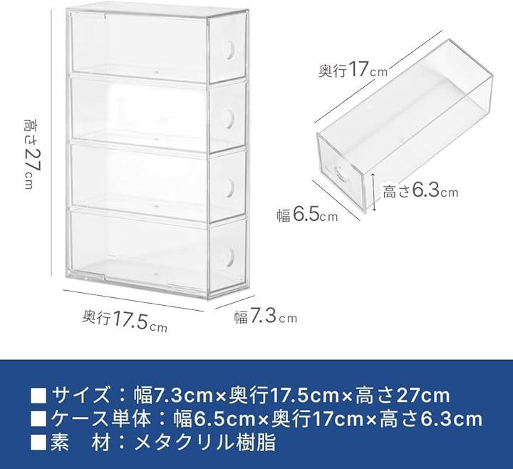 「商品詳細」サイズ:幅7.3cmx奥行17.5cmx高さ27cm ケース単体:幅6.5cmx奥行17cmx高さ6.3cm 素材:メタクリル樹脂