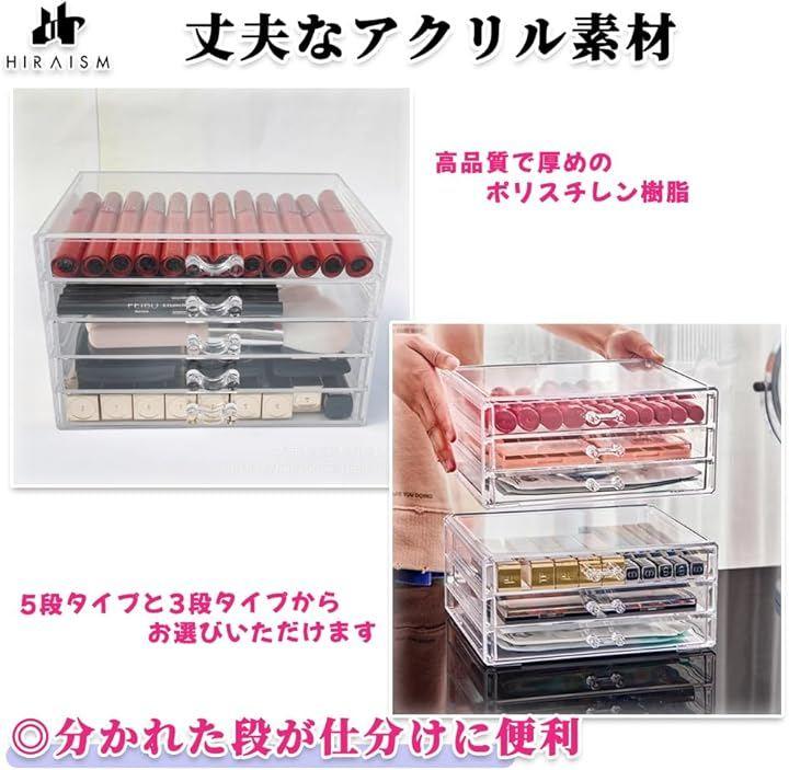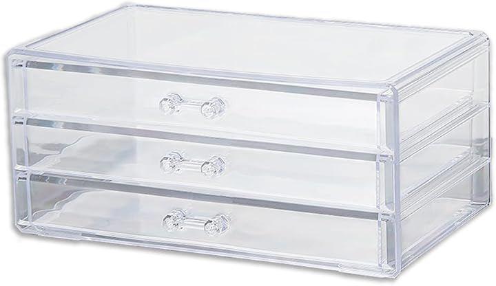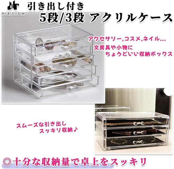 「引き出し付き。3段アクリルケース」アクセサリー、コスメ、ジェルネイル、ビーズ、レジン、文房具や小物などの収納に最適な引き出し付き卓上収納ボックスです。