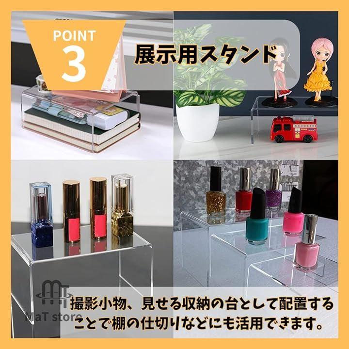 ご自宅で収集した趣味のコレクションの陳列用・お店で商品のディスプレイ台やフリマアプリ・オークションの撮影小物、見せる収納の台として配置することで棚の仕切りなどにも活用できます。