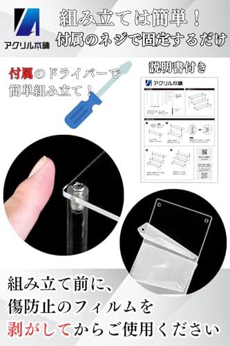 【??コレクションを輝かせるアクリルディスプレイスタンド】 愛するフィギュアやコレクションを魅力的に展示するためのアクリルスタンド。透明度が高く、どんなデコレーションにもマッチする洗練されたデザイン。コレクター必見のアイテムで、部屋をオシャレな展示空間に変えましょう。 【?美しい陳列が叶う、フィギュアスタンド】 このフィギュアスタンドは、コレクションを一層引き立てるアクリル棚。フィギュアからアート作品まで、あらゆるアイテムを美しく陳列できます。安定感がありながらも見た目はスッキリとしていてあらゆるインテリアに溶け込みます。コレクションを最高の状態で展示し、鑑賞の楽しみを深めましょう。 【??コレクションの美しさを際立たせる、アクリル展示台】 細部までこだわり抜いたアクリル製の展示台は、フィギュアや記念品をより魅力的に見せるための最適なソリューションです。透明度が高く、コレクションアイテムが浮かび上がるような展示が可能。価値あるコレクションを次の世代にも受け継いでいきましょう。 【簡単組み立て】付属のネジとドライバーで簡単に組み立てられるため、手間なくお使いいただけます。 【安心の日本ブランド】当アクリル本舗ブランド正規品は30日間返品・返金保証付き。当ブランド以外の商品につきましては、責任は当ストアでは一切負いかねますので、ご購入の場合は十分にご注意ください