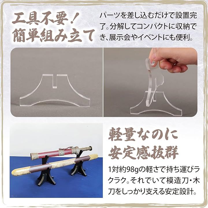 軽量でありながら安定感があり、模造刀や木刀をしっかり支えます。
