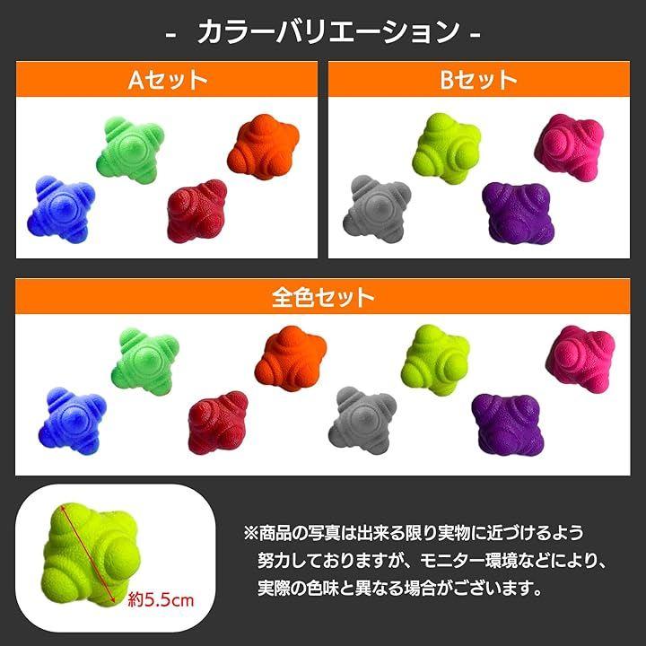 突起付き形状で不規則にバウンドするリアクションボールは、予測不能な動きが反射神経と動体視力を効果的に刺激。