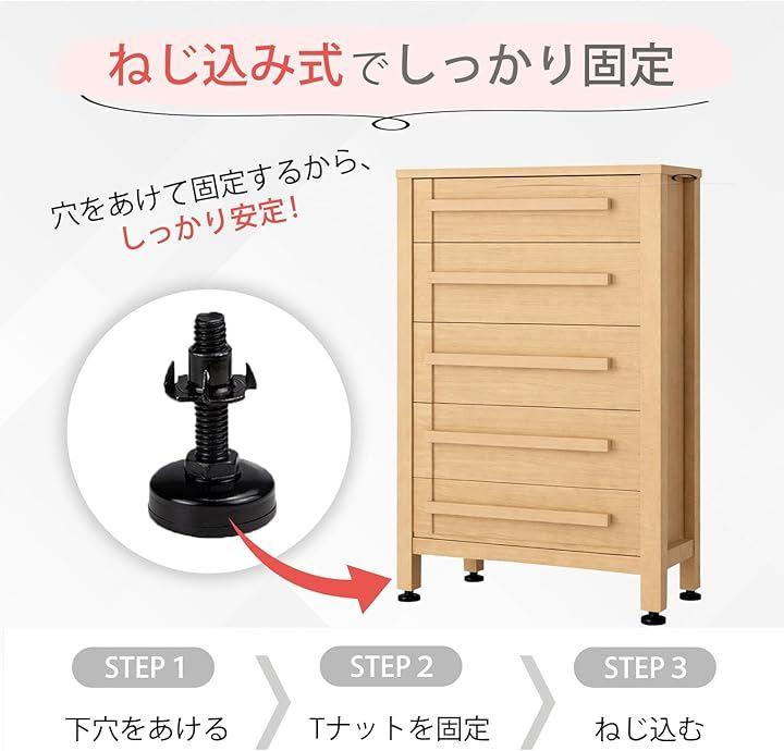 載せるだけの継ぎ脚と違いしっかり固定するため安定し、重い家具にも対応できます。