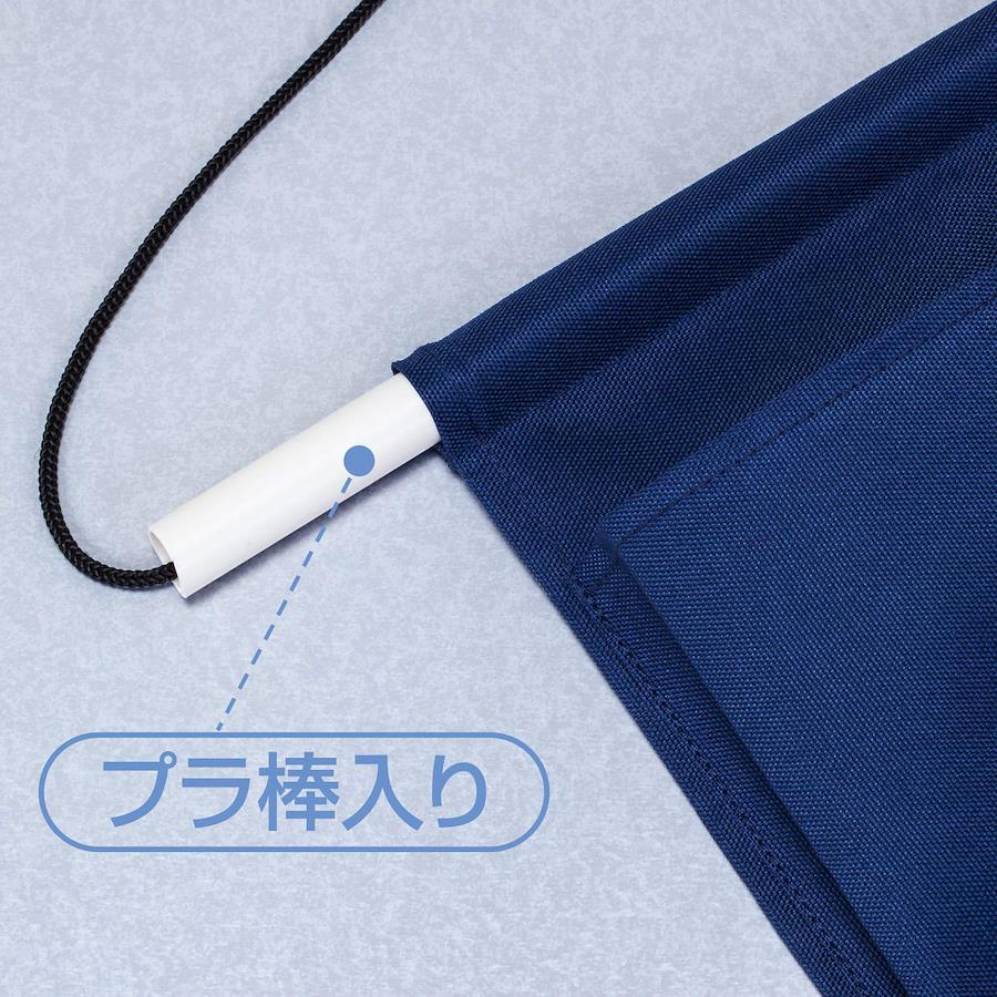 【商品仕様】:サイズ/約幅32×高さ43.5cm(ひも除く)、色/ネイビー、内容/1枚、材質/ポリエステル(塩化ビニルコーティング)、ポリプロピレン、アクリル