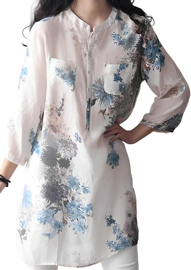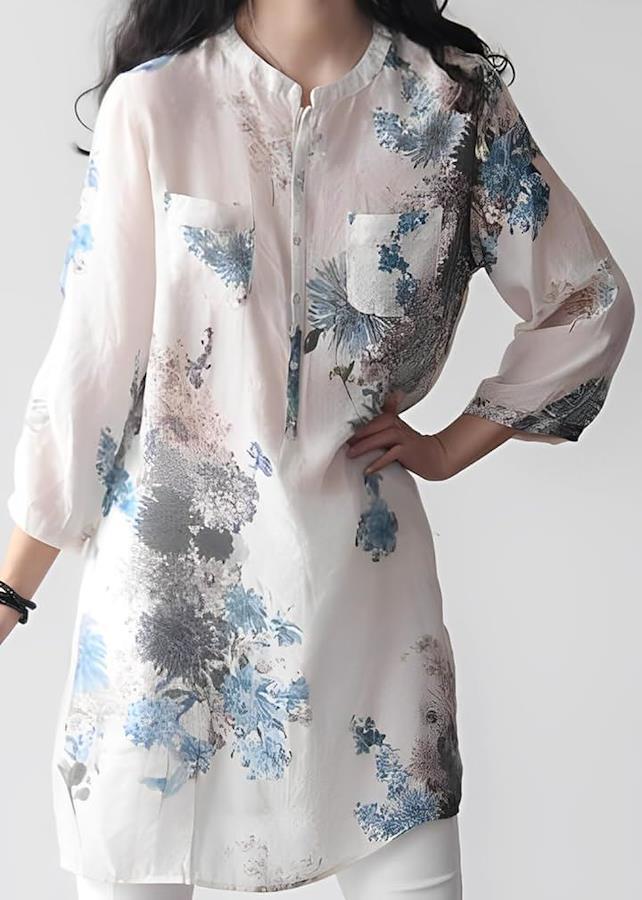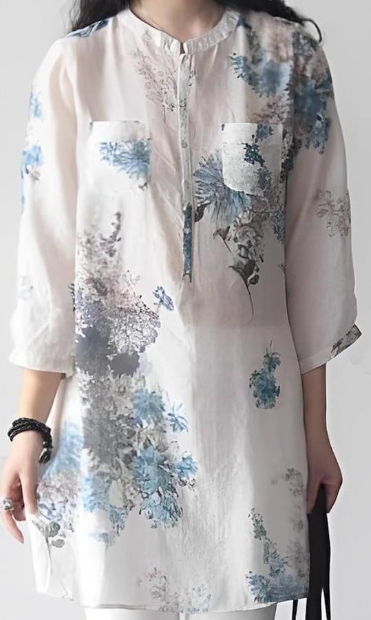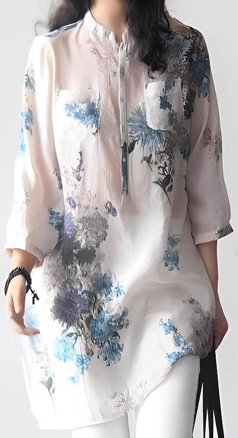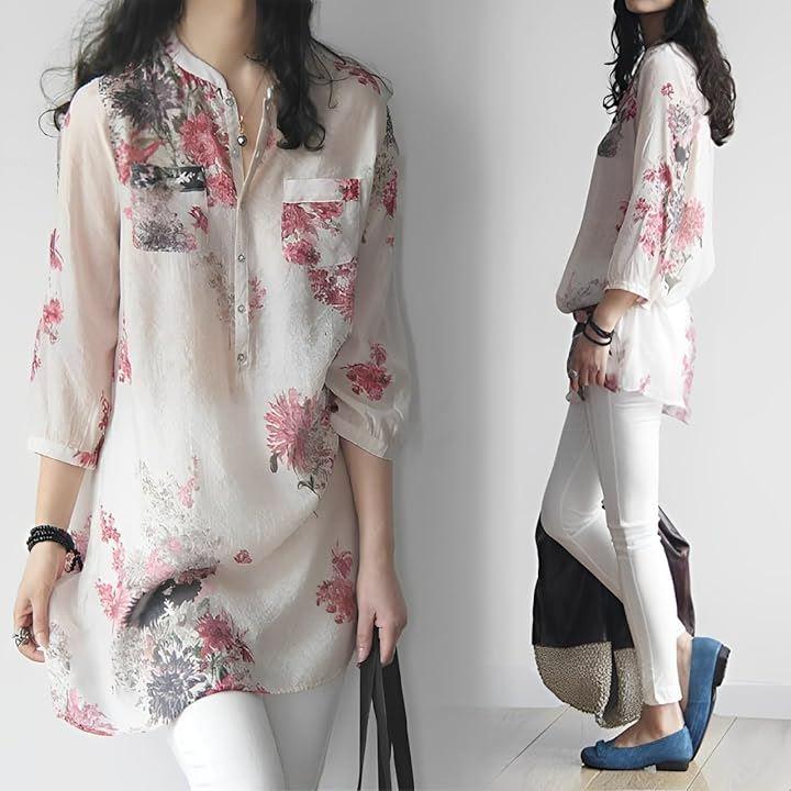 ・上品さが溢れだす花柄デザインのチュニックトップス。
