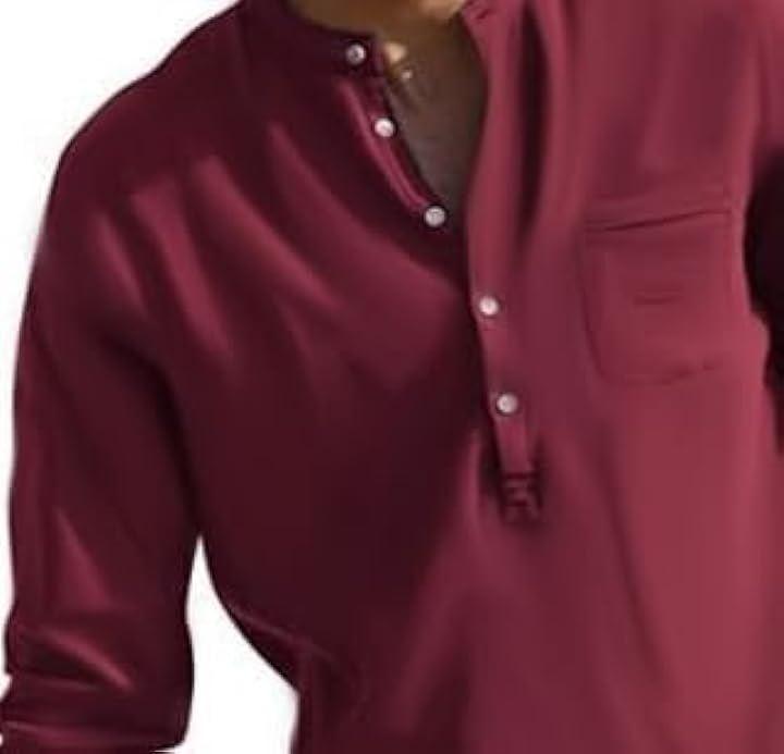 *ほどよい抜け感とスッキリとした見た目がとても上品* *重ね着にもぴったりなノーカラーシャツはきちっと感を残しつつも優しさのある印象を演出* *ゆるさとかっこよく決まるデザインがマッチして男らしさが引き立ちます*