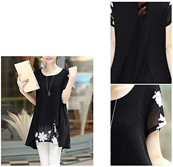 (アスペルシオ)aspersioレディースシンプルレイヤード花柄シースルーチュニック重ね着風半袖フリルトップス