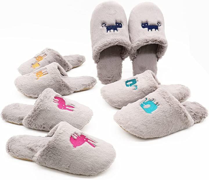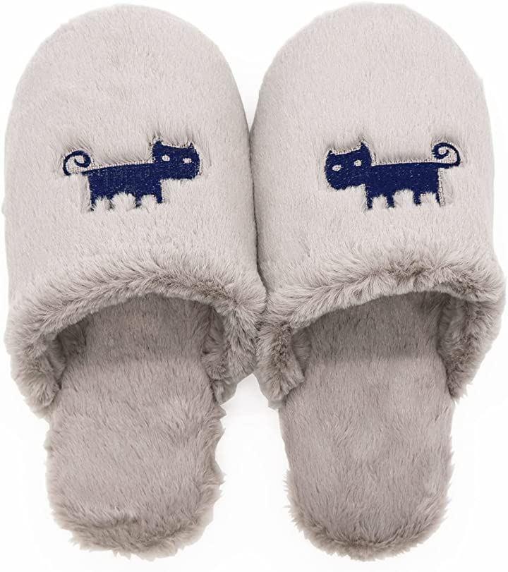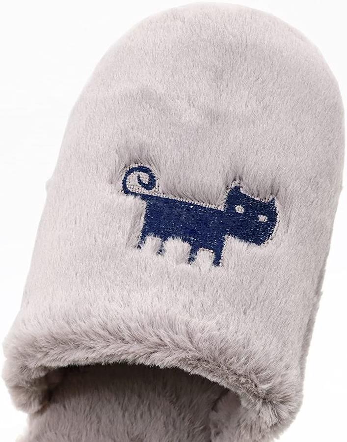 ・ニット素材の可愛らしいソフトタイプのスリッパ・・刺繍のワンポイントの動物柄があしらわれており、リビングにも、お部屋にもおススメのルームシューズ・