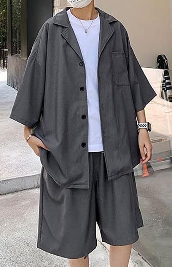 *開襟シャツとひざ上パンツは単体使いでも主役級の存在感を発揮* *男らしさを存分に引き出してくれる綺麗目なシルエット*