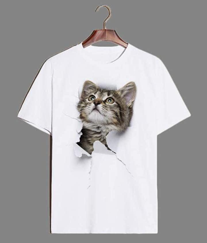 のぞき見ニャンコのデザイン・着丈も若干短めに設定したスリムな着こなしができる一枚です・「サイズ」「Mサイズ胸囲:44.5cm着丈:62.5cm肩幅:43cm袖丈:19cm裾幅:45.5cm」「Lサイズ胸囲:48.5cm着丈:65cm肩幅:45cm袖丈:20cm裾幅:48cm」