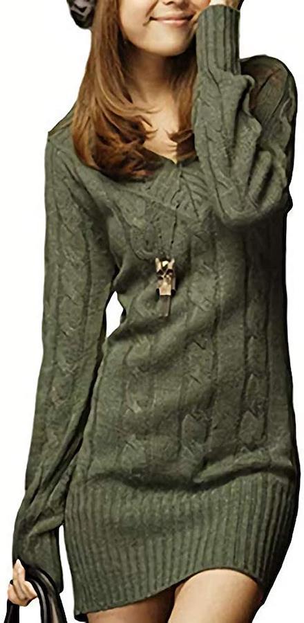 ・・存在感たっぷりなケーブル編みニットワンピース・・深めのVネックでスッキリとしたセクシーデザイン・・Iラインシルエットで、スタイルUP効果も・・