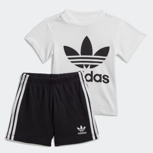 (アディダスオリジナルス) adidas Originals キッズ 子供用トレフォイル ショーツ Tシャツ セット FI8318 KIDS TREFOIL SHORTS TEE SET WHITE × BLACK