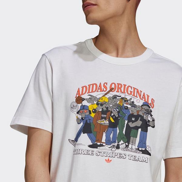 【DETAIL】・アーカイブモデルにインスパイアされた、遊び心のあるTシャツ。・ちょっと世間ずれした者、変わり者、それからファッショニスタ。・みんな、3ストライプチームへようこそ。・もしキミが自己表現や自分のスタイルを大切にしているなら、ここがキミのいるべき場所。・このグラフィックTシャツを頭からさっと被れば、肌あたりのソフトなコットン生地が快適に身体を包んでくれる。・アディダスは、プラスチック廃棄物をゼロにする取り組みの一つとして、コットン製品でサステナブルな綿花栽培をサポートしている。