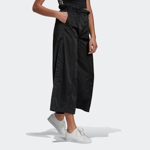 【DETAIL】・定番のトラックパンツがエレガントにリニューアル。・ランウェイを歩かなくったって、注目を集めることはできる。・このアディダス 7/8丈トラックパンツさえはけば、スーパーマーケットでもオフィスでも、みんな振り返る。・同系色の3ストライプが着こなしをスポーツカジュアルにまとめる、はきやすいクロップド丈。・週末に出番がなく、月曜が来ても大丈夫。・艶やかなシルキー素材を使ったワイドレッグスタイルだから、オフィスにはいていっても違和感なし。・感度の高さとエレガンス漂うデザインに、ルーシュと腰から下がるドローコードで遊びを入れた、意外性のあるスタイルが魅力。