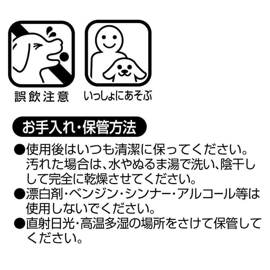 ●本品は犬用です。犬以外には使用しないでください。●適応犬種以外には使用しないでください。●ラテックスアレルギー体質の人や犬には使用しないでください。●人やペットが破片等を誤飲しないように注意してください。万一、誤飲した場合は各医師に相談してください。●人やペットに向かって投げないでください。●犬のかみ方やかむ力・使用方法等によっては破損します。●子供が使用する場合は、大人が立ち会ってください。●道路・駐車場等危険のある場所や、不特定多数の人が出入りする場所では使用しないでください。●使用する時は、周りに人がいないか注意してください。●倒れやすい物や破損しやすい物のそばで使用しないでください。●遊ばせる前に破損箇所がないかを必ず確認してください。●与えたままの使用は破損や事故につながりますので、必ず飼い主が一緒に遊び、万一破損した場合はすぐに取り上げてください。●商品の特性上、多少の色ムラや変色があります。また、水ぬれや摩擦等で色落ちする場合がありますので、注意してください。●火気や水気のそばでの使用や保管はしないでください。●幼児・子供・ペットのふれない所に保管してください。