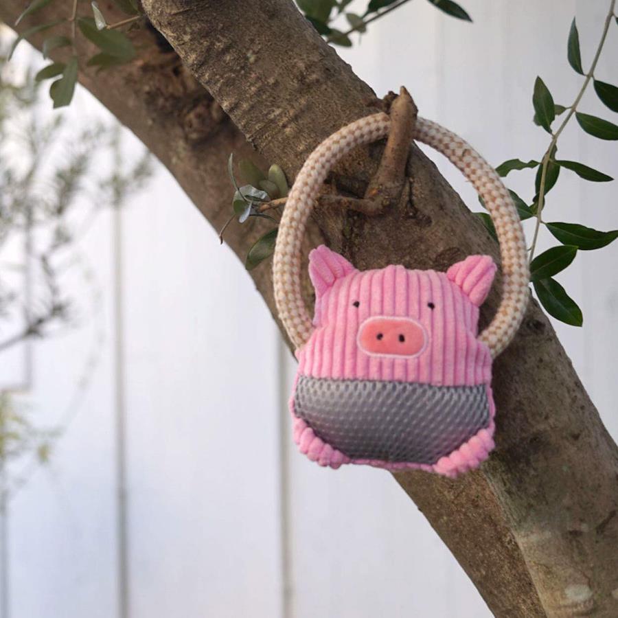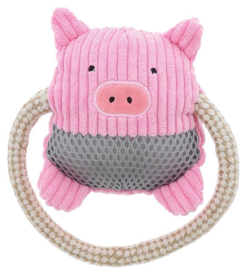 ロープとメッシュ生地が歯の隙間に入り遊びながら歯のお掃除ができる。ピューピューなる笛入り。