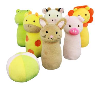 布製のぼうりんぐは転がしても大きな音がしないので安心。6種類の動物でごっこあそびもできます。サイズ:20cm(ピン)Φ12cm(ボール)原産国:中国企画:日本