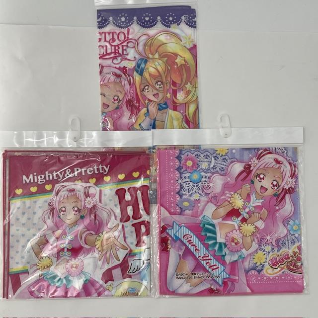 キュアエール、ハグタン、プリキュアのデザインされたナフキン3枚セット。未使用品