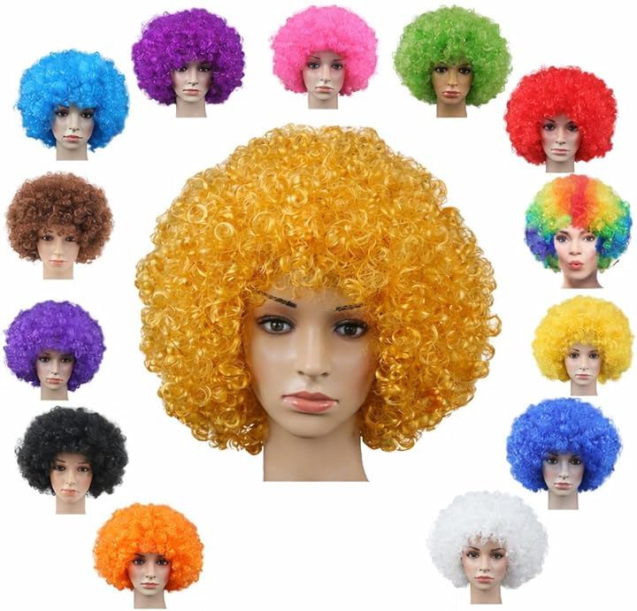 「スポーツ観戦に。チームカラーで応援。」チームカラーのウィッグで目立っちゃおう。鮮やかな発色とボリュームたっぷりのアフロヘアーはテレビクルーも大注目。TVカメラにクローズアップされちゃうかも⁉