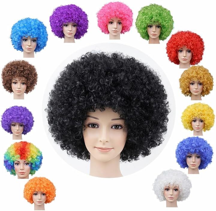 「スポーツ観戦に。チームカラーで応援。」チームカラーのウィッグで目立っちゃおう。鮮やかな発色とボリュームたっぷりのアフロヘアーはテレビクルーも大注目。TVカメラにクローズアップされちゃうかも⁉