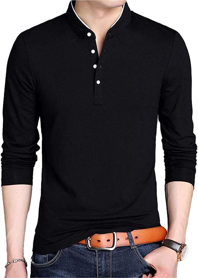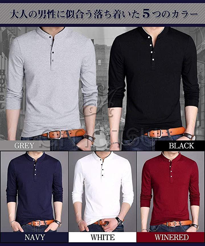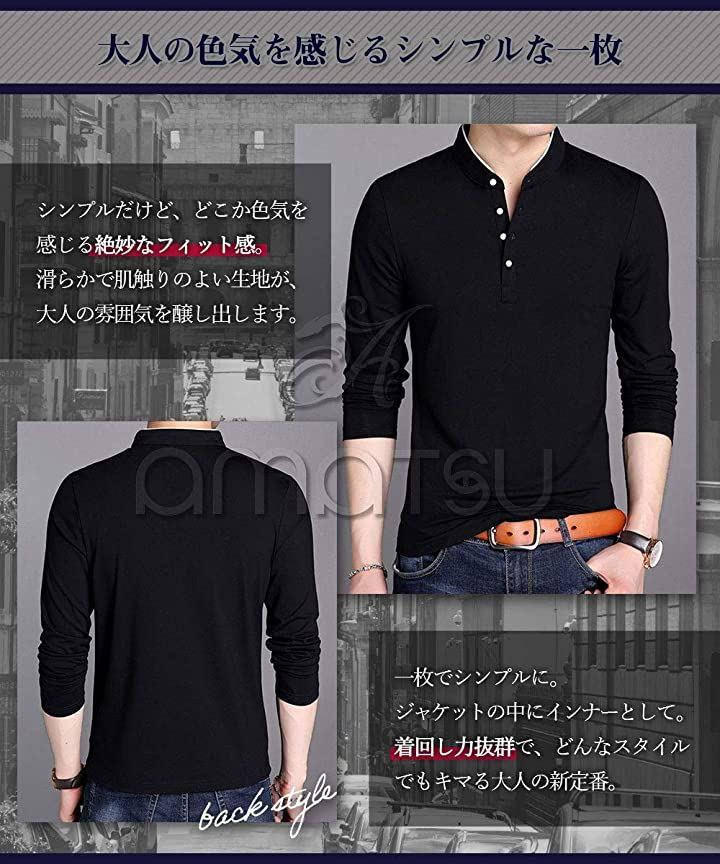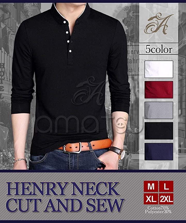 Amatsu Henley Neck Plain Cut and Sew Casual Simple Top Long Sleeve Men's