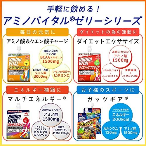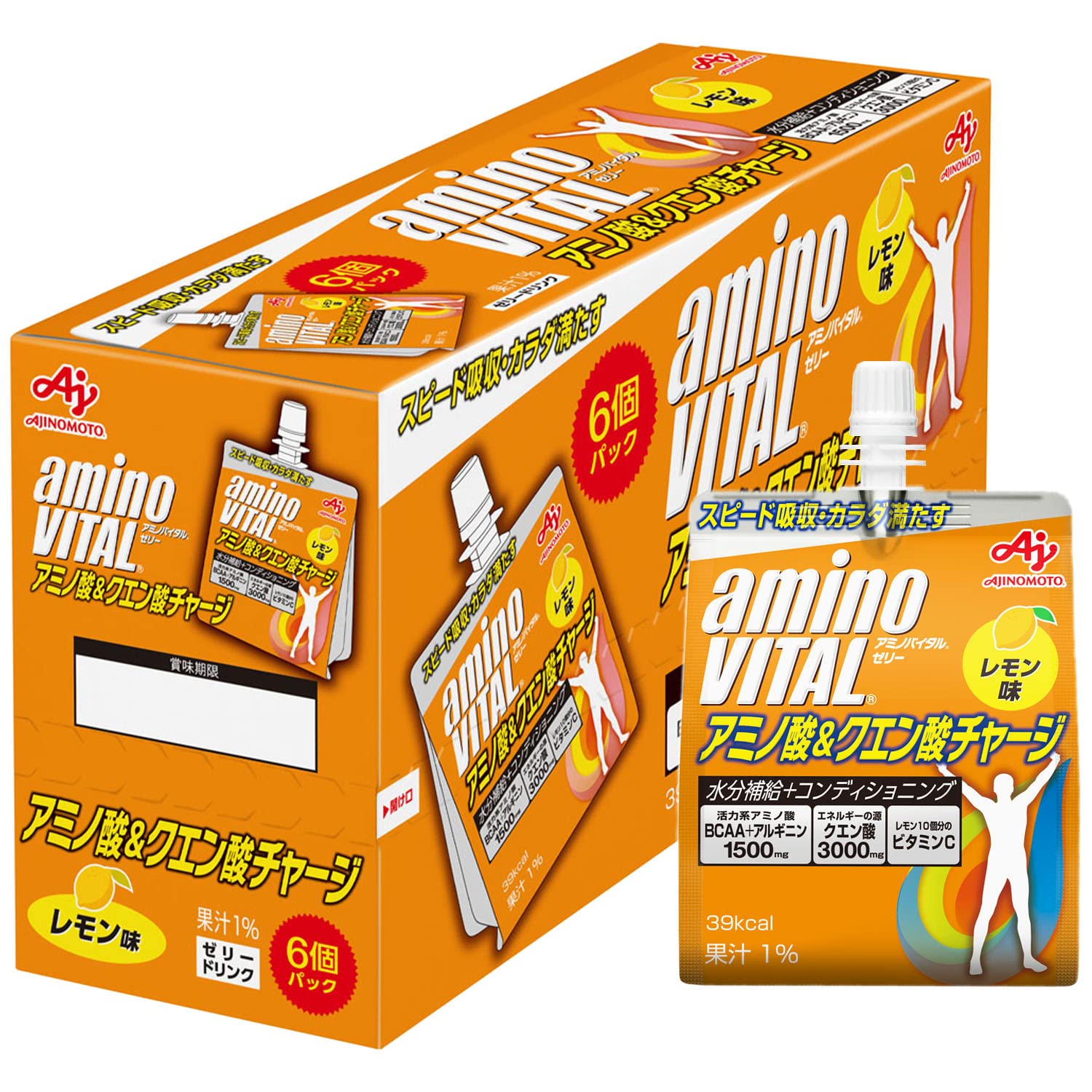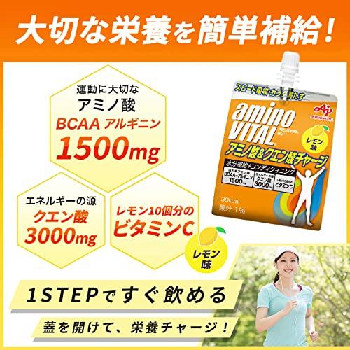 カラダを元気に保つために大切なアミノ酸BCAA+アルギニン1500mgとエネルギー源となるクエン酸3000mg、レモン10個分のビタミンCを配合した、効率的な水分補給やコンデイショニングをサポートするゼリードリンクです。カロリーは39Kcalでスポーツ時にもおいしくお飲み頂けるさわやかなレモン味です。 カラダを元気に保つために大切なアミノ酸BCAA+アルギニン1,500㎎とエネルギー源となるクエン酸3,000㎎にレモン10個分のビタミンCを配合した、効率的な水分補給やコンディショニングをサポ―トするゼリードリンクです。 スポーツ時にもおいしくお飲み頂ける、さわやかなレモン味です。カロリーは39kcalで、運動前や運動中の水分補給やコンディショニングにご活用いただけます。 【利用シーン1】マラソン、サイクリング、ランニング、水泳、サッカー、野球、バレーボール、バスケ、テニス、バドミントン等、スポーツ全般でのリカバーをサポートします。 【利用シーン2】ゴルフや登山、ハイキングやウォーキング、音楽フェス等の屋外活動でのコンディショニングにもぴったりです。 【利用シーン3】ジムや自宅での運動や筋トレで筋肉を付けたい方、カラダづくりやダイエットの為に運動する方にもぴったりです。 6個セットでの販売ですので、ご自宅でのストックに便利です。 【1袋(180g)あたり】 エネルギー:39kcal、アミノ酸:1500mg、BCAA:740mg (ロイシン300mg、イソロイシン240mg、バリン200mg)、アルギニン750mg、クエン酸3000mg、ビタミンC:200mg (#lf)(#lf)(#lf)商品購入前に、ストア紹介ページをご確認ください。