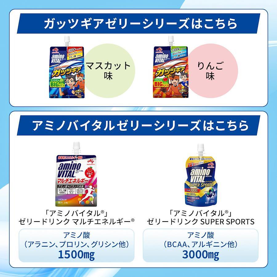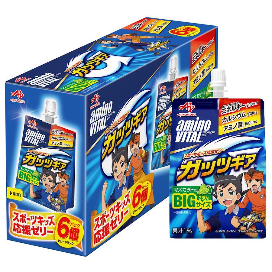 バナナ2本分強のエネルギー(200Kcal)に加え、お子様の成長に大切なカルシウム、アミノ酸1500㎎を配合したゼリードリンクです。大容量250gでキャップ付きの為いつでもどこでも好きなタイミングで摂取する事が出来ます。育ち盛りのお子様のスポーツにぴったりのゼリードリンク。 バナナ2本分強のエネルギー(200kcal)に加え、お子様の成長に大切なカルシウム、アミノ酸1500㎎を配合したゼリードリンクです。 すっきりとしたマスカット味のゼリー飲料です。キャップ付きのパウチ入りで飲みやすくなっております。 お子様の部活動や習い事の前後のおやつに。大容量なので大人の方のトレーニング後や、年配の方の栄養補助食品としてもぴったりです。 6個セットでの販売ですので、ご自宅でのストックに便利です。 【1袋(250g)あたり】エネルギー:200kcal、たんぱく質:1.5g*、脂質:0g、炭水化物:50g*、食塩相当量:0.34g、カルシウム:130mg、アミノ酸:1.5g(アラニン:1.35g、プロリン:0.15g)、リン:51.8mg 【1袋(250g)あたり】エネルギー:200kcal、たんぱく質:1.5g*、脂質:0g、炭水化物:50g*、食塩相当量:0.34g、カルシウム:130mg、アミノ酸:1.5g(アラニン:1.35g、プロリン:0.15g)、リン:51.8mg
