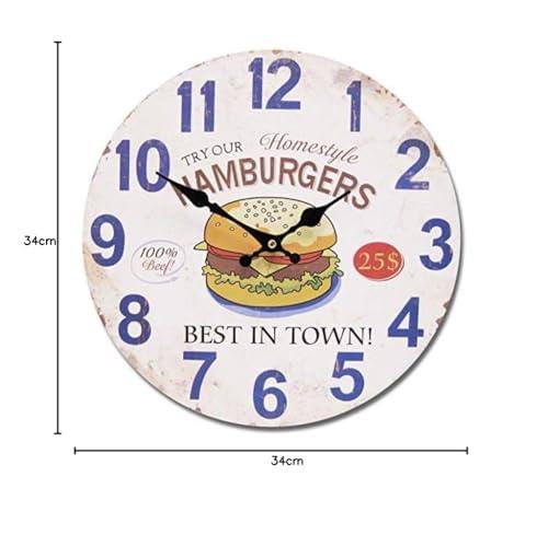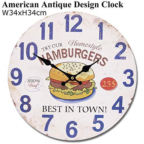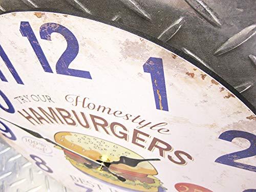 アメリカンウォールクロック 時計 34cm (ハンバーガー A111) 壁掛け時計 ダイナー カフェ 大きい ヴィンテージ風 ガレージ おしゃれ 西海岸風 インテリア アメリカン雑貨