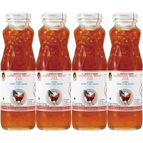ニワトリのマークが印象的なこちらの“メープラノム"ブランドは、タイでは知らない人がいないほどの有名メーカーです。唐辛子、にんにく、砂糖などを原料とした甘辛ソース。生春巻ぼタレだけではなく、様々な揚げ物のつけだれとして使用されています。マヨネーズと1:1で混ぜたり、レモン汁を加える使い方もおすすめです。メープラノム社のスイートチリソースの特徴は、甘すぎず、辛すぎず、食べ続けても飽きないバランスの良い味。ぜひお試し下さい。