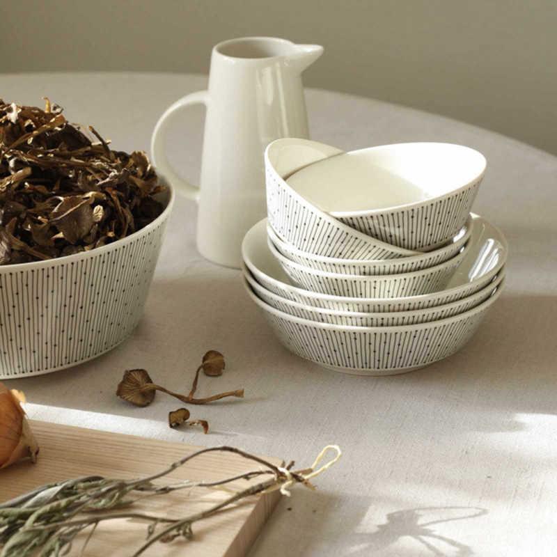 マイニオ・サラストゥスは、多目的に使えるスタッキング可能なピースが揃ったモダンなディナーウェアセットです。