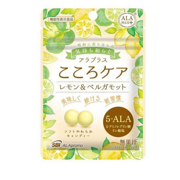 製品の特徴●ALA PLUS+ アラプラス こころケア ソフトやわらかキャンディー レモン&ベルガモット味●機能性表示食品●幸せホルモンと呼ばれる「セロトニン」濃度を上昇させることで落ち込んだ気持ちを和らげる作用を持つ「5-ALA」を機能性関与成分として配合。おいしく食べながら、一時的なストレスを感じている方の一時的に落ち込んだ気持ちを和らげる、新発想のソフトキャンディーです。●癒しを感じるようなレモン&ベルガモットフレーバーで、さらに食べ応えのあるソフトキャンディータイプを採用。口さみしい時のオヤツでおいしく手軽に心の健康ケアを実現しました。●仕事や家事・育児などでストレスを感じている方、ストレスで気分が落ち込んでしまう方、サプリメントには抵抗がある方などにお試しいただきたい商品です。