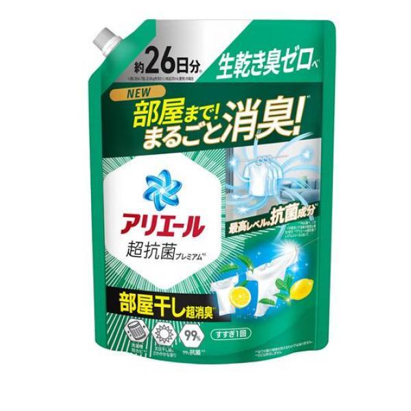 製品の特徴●アリエール リビングドライ イオンパワージェル 超抗菌プレミアム 部屋干し超消臭●液体洗剤●部屋まで!まるごと消臭(*1)!●高レベルの抗菌成分(*2)●18時間抗菌(*3)●干した衣服も部屋もW消臭(*1)!●厚手タオルやパーカーの生乾き臭も徹底消臭(*1)●洗濯サイクルエンドレス消臭!脱ぐ瞬間までニオイ断つ(*1)!●洗濯槽の防カビ(*4)●10%濃縮(*5)!少ない量で同じだけ洗える●縦型・ドラム式・すすぎ1回OK●天日干し級にさわやかな香り●品名:洗濯用合成洗剤●液性:弱アルカリ性●用途:綿、麻、合成繊維用